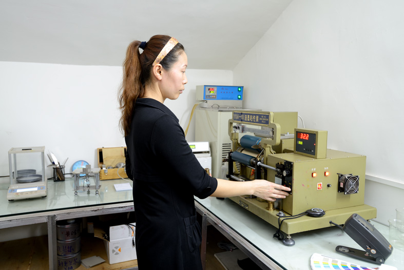 3.黏性:油墨的黏性用油墨粘性仪测试。油墨黏性值的大小是指使黏性仪两个辊子之间油墨膜分离的力的大小。油墨黏性过大过小都会影响印刷的质量。另外还要根据印刷顺序选择各色油墨的相对黏性大小。正常的条件下,是不需调整油墨粘性的,如需调整可根据其黏性、稠度情况选择助剂。